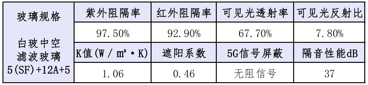 制作工艺是,5mm烧镀玻璃原片+12mm的中空层+5mm的白玻。其中, ④白玻⑤白玻可以更换为离线玻璃,隔热防紫外效果会更佳。