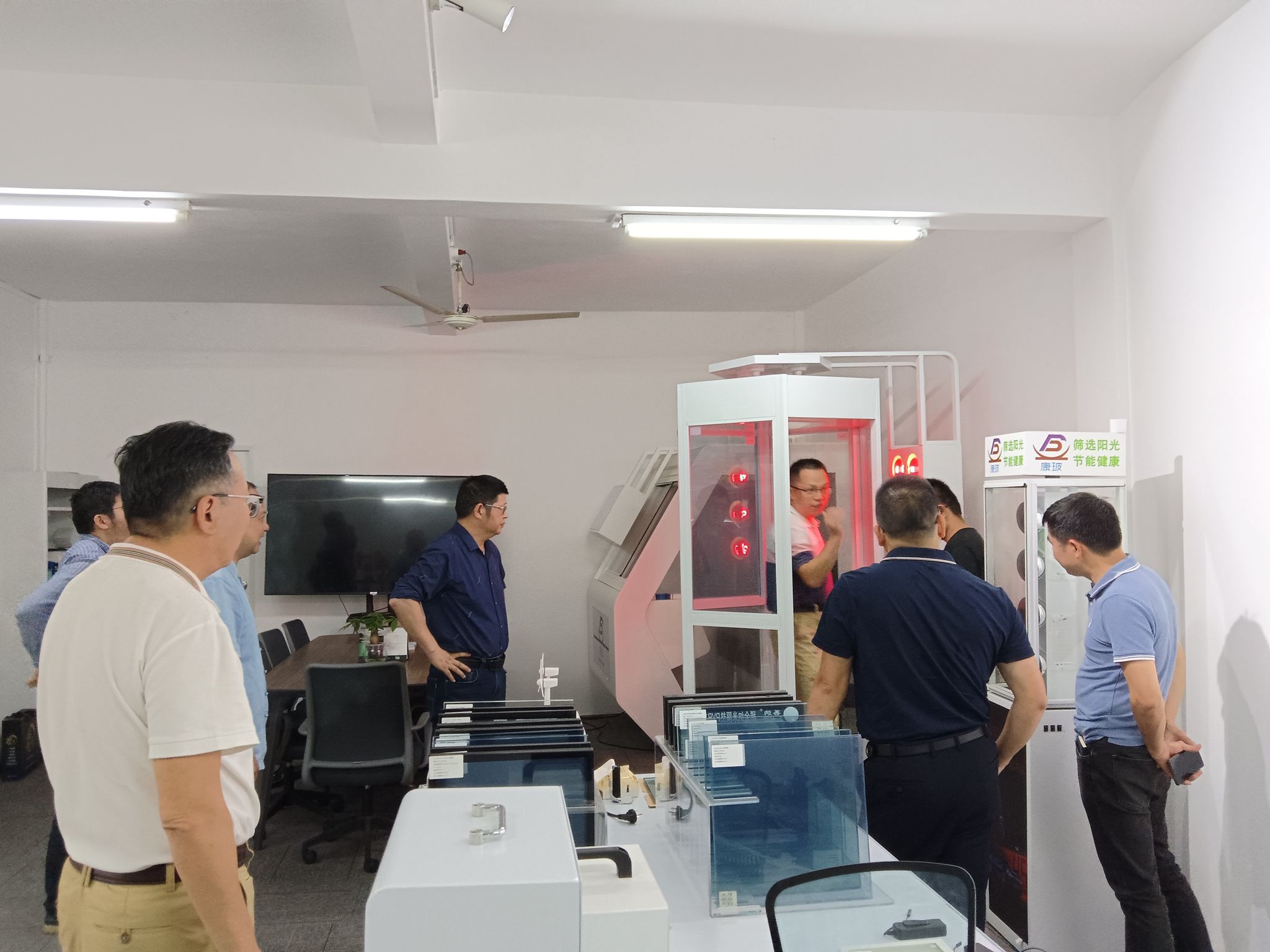 中稀材管理层对冼主委及建筑总支会员的莅临表示衷心的感谢,认真听取各位嘉宾的意见和建议,坚定走出“先附后钢”的玻璃赋能创新的国产技术和工艺的道路,实现稀土滤波熔烧镀膜玻璃技术产业化。