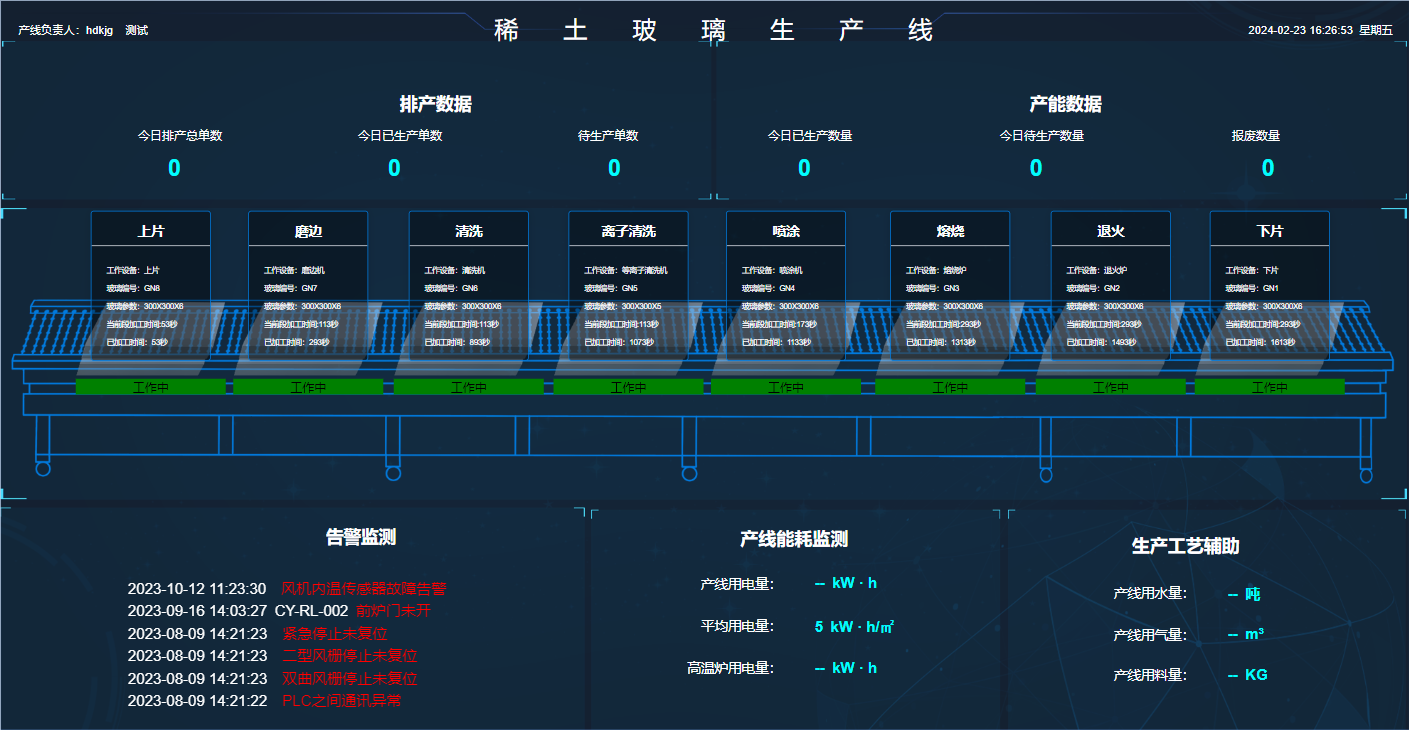 产线能耗:产线用电量、平均用电量、高温炉用电量。