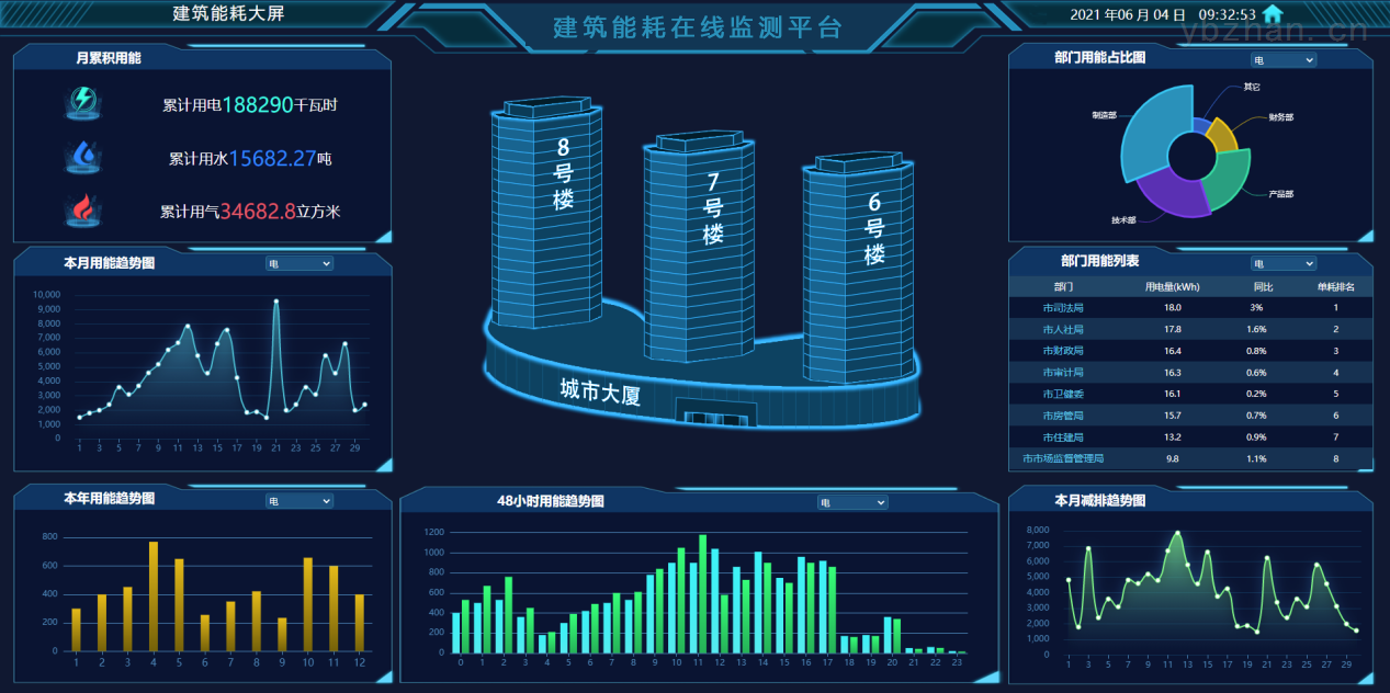 建筑能耗在线监测平台通过计量、采集、传输、存储、统计、分析等多层面应用实现能耗的全过程监控,以分类分项数据为基础,结合物联网、大数据的技术,不断在错综复杂的各项用能数据中发现管理节能、改造节能的空间,强化能耗管理手段。